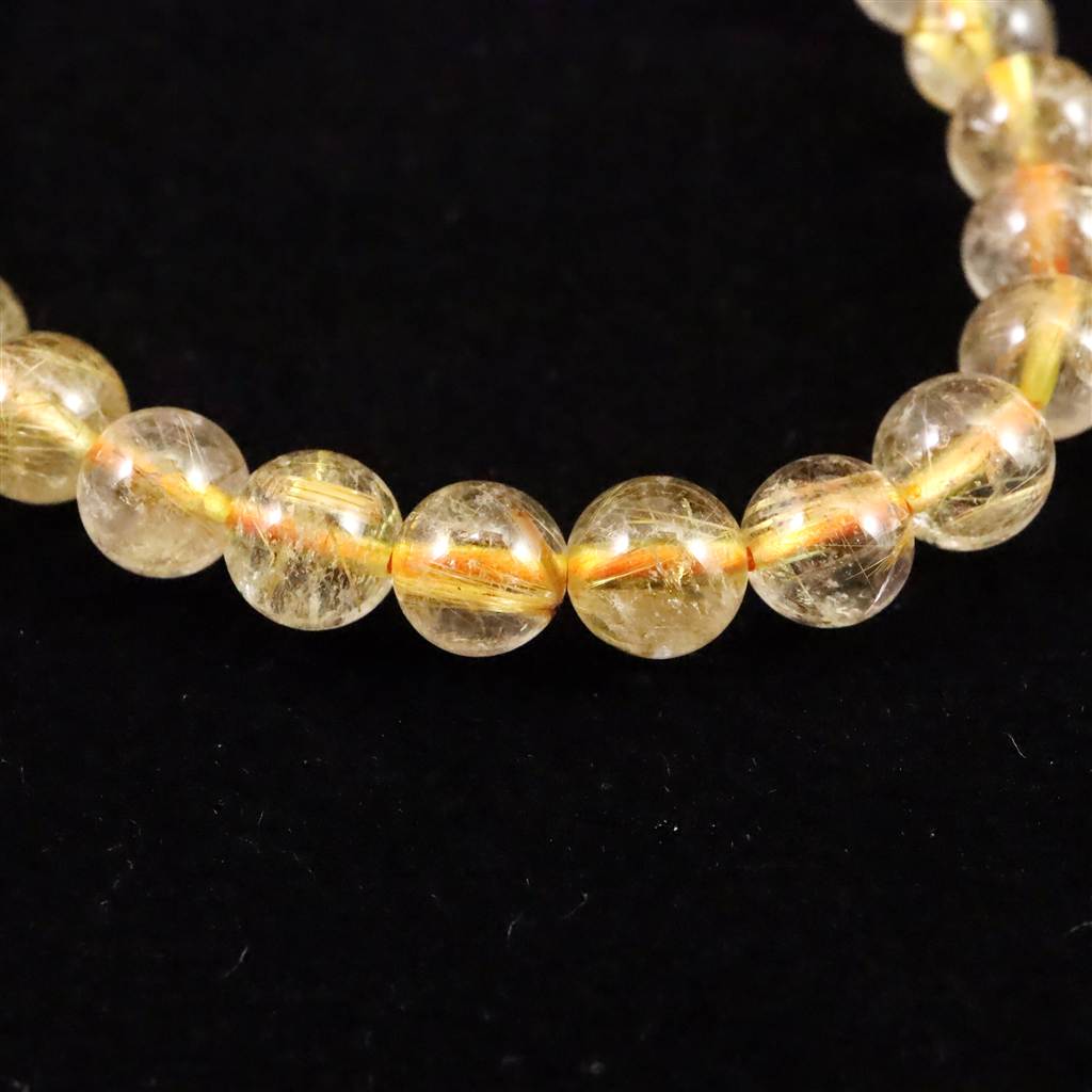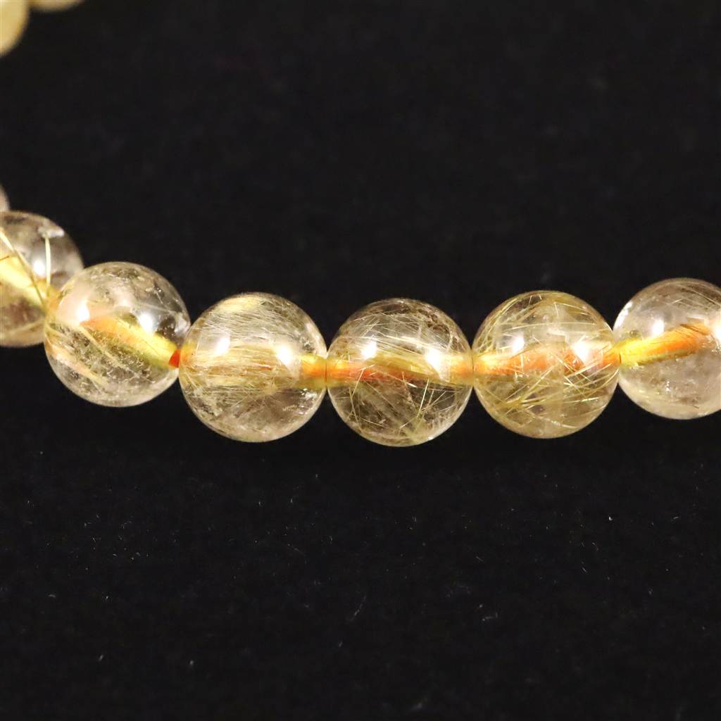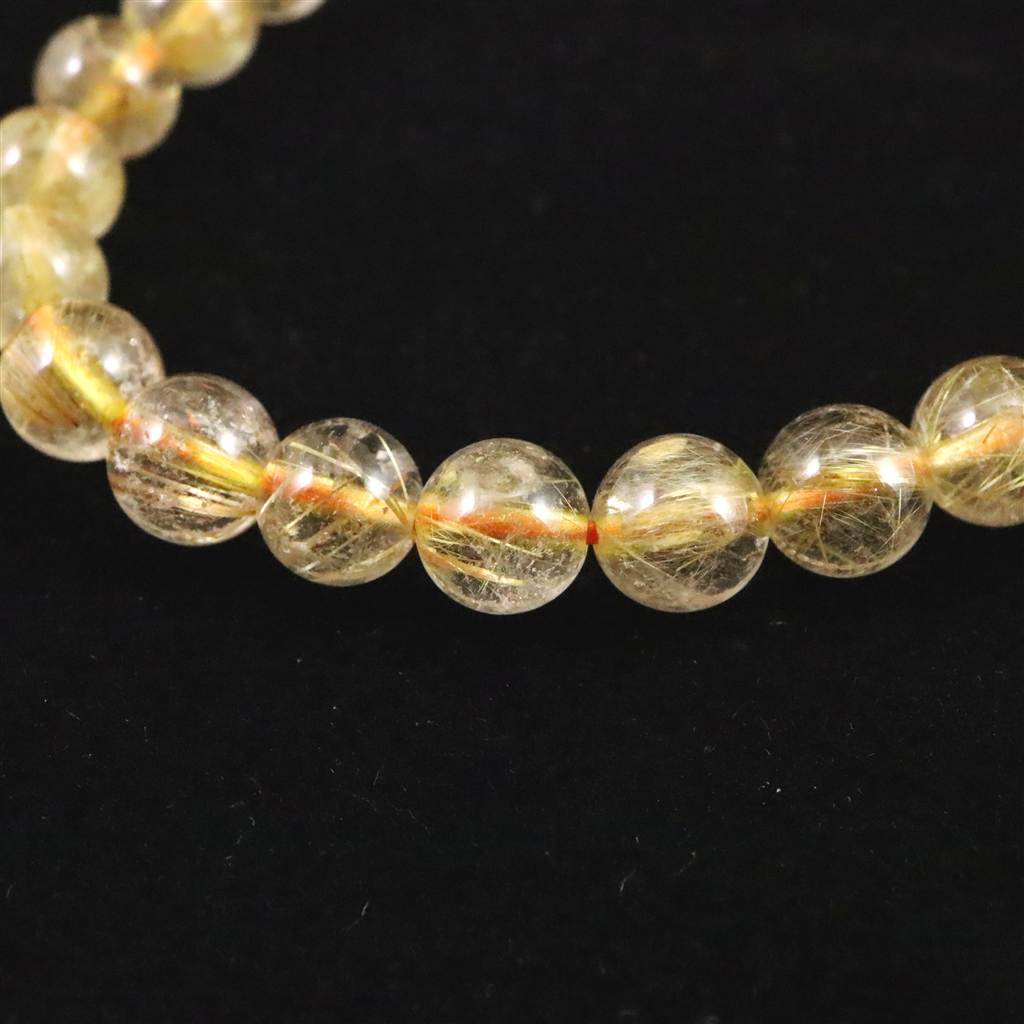 ゴールドタイチンルチルクォーツ 3A 7mm玉ブレスレット 13.2g (ID:14930)