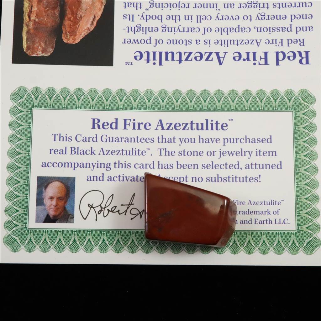 ◆ロバート・シモンズ氏より....レッドファイアアゼツライトは、ニュージーランドだけで産出される不透明なディープ・レッド色のアゼツライトです。この石は力と情熱の石です。まるで血液のように、光明のエネルギーを全細胞に行き渡らせ、情熱を高め、真の自己信頼、楽観性、内側から力が漲ってくるような感覚を与えます。レッドファイアアゼツライトは、疲労とストレスを軽減します。消耗感や不安を感じている時には、この石と一緒に眠ったり、共に瞑憩したりすることを強くお薦めします。この石は下垂体と松果腺に刺激を与え、霊的な能力を高めます、ヴィジョンを明晰にし、内観する力を与えます.高次の教師や天使的存在との交流を促します。また脳の知的活動、ハート、身体を活性化します。問題解決をサホーlし、直感的アイデアを刺激し、ヴィジョンの具現化向けて前進する力を高めます。細胞に生命力をもたらし、身体を健やかにし、持久力を与えます。