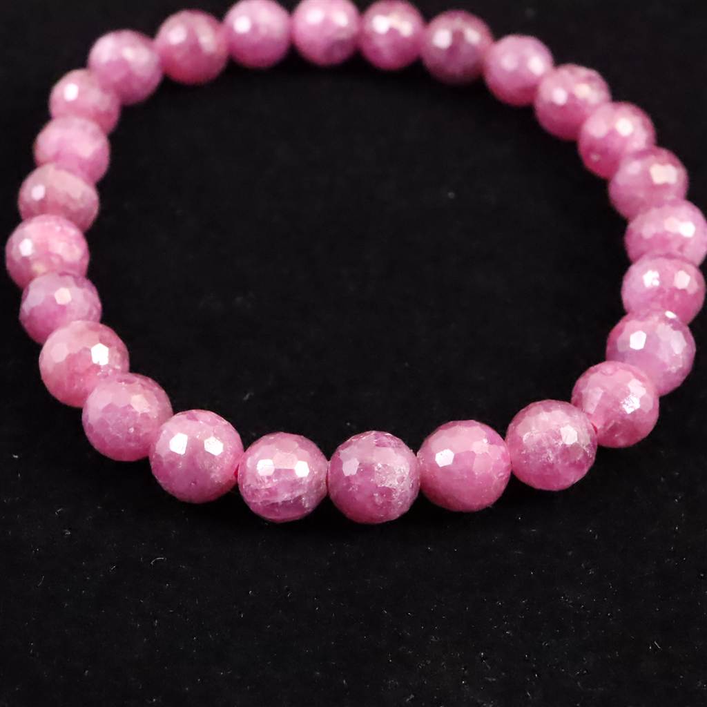 天然ルビー 128面カット AA+ 7mm玉 ブレスレット 19.3g (ID:31412)