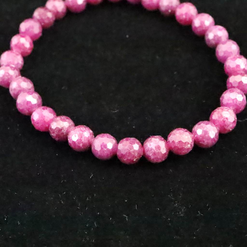 天然ルビー ミラーボールカット (2A) 6mm玉 ブレスレット 12.17g (ID:58625)