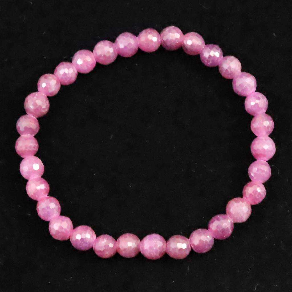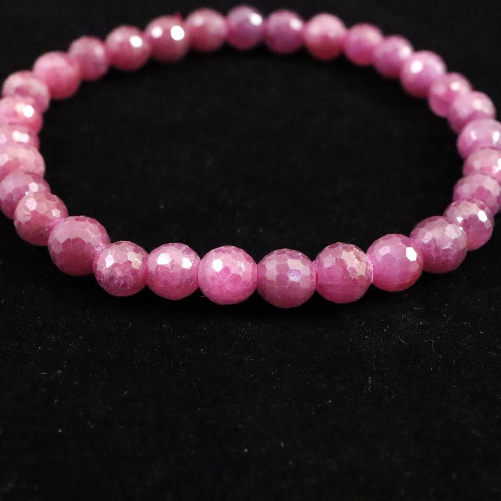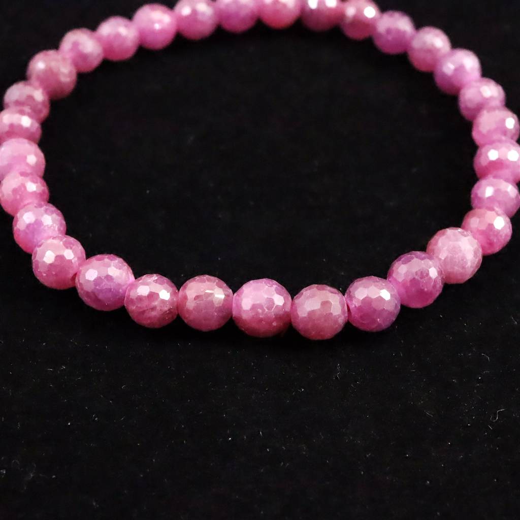 天然ルビー 128面カット AA+ 6mm玉 ブレスレット 13.4g (ID:60716)