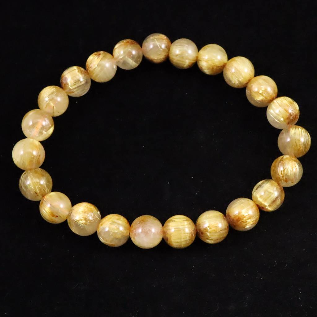 ・商品名 :ゴールドタイチンルチルクォーツ AAAA 8mm玉ブレスレット 18.1g (ID:55625)