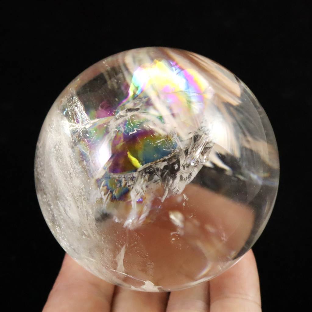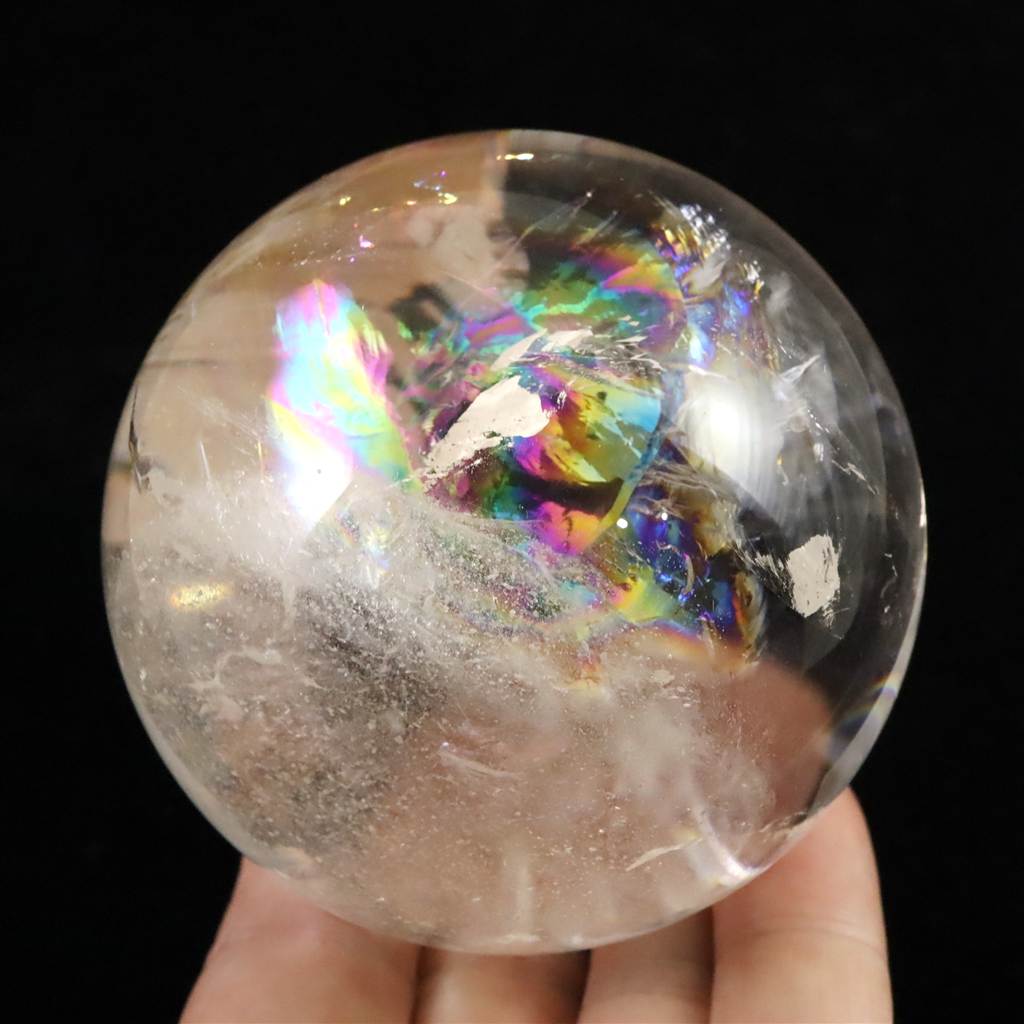 ・商品名 :ブラジル産 天然水晶 70mmスフィア 丸玉 レインボー アイリスクォーツ 台付 483g (ID:15795)
