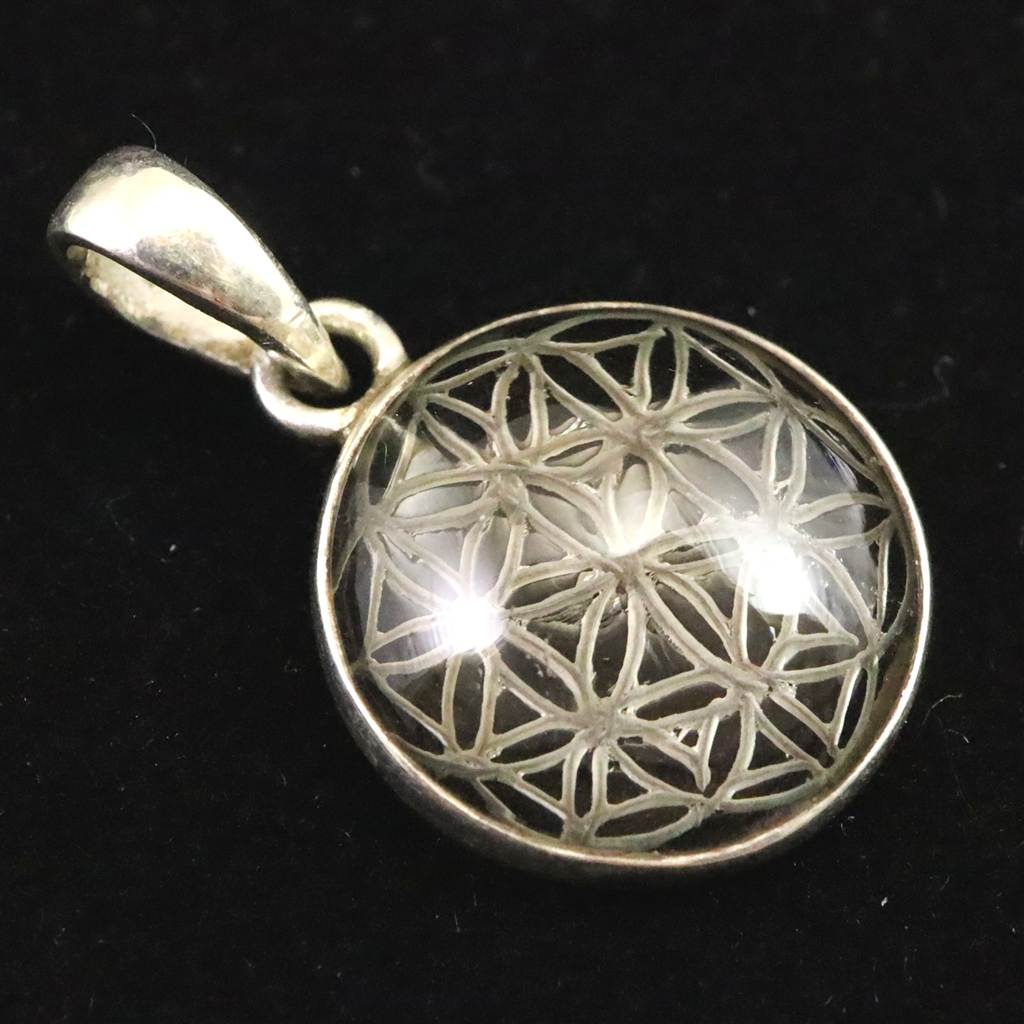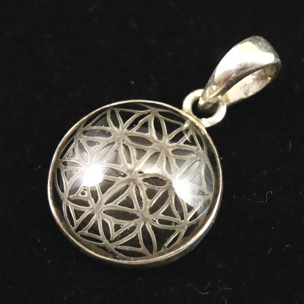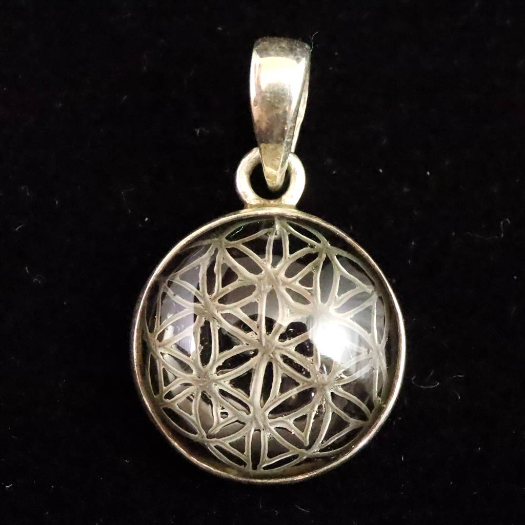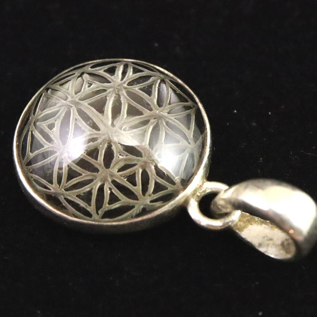 ◆ 希少なネパール・ガウリシャンカール産スモーキー・クォーツ、フラワーオブライフのペンダントトップです。