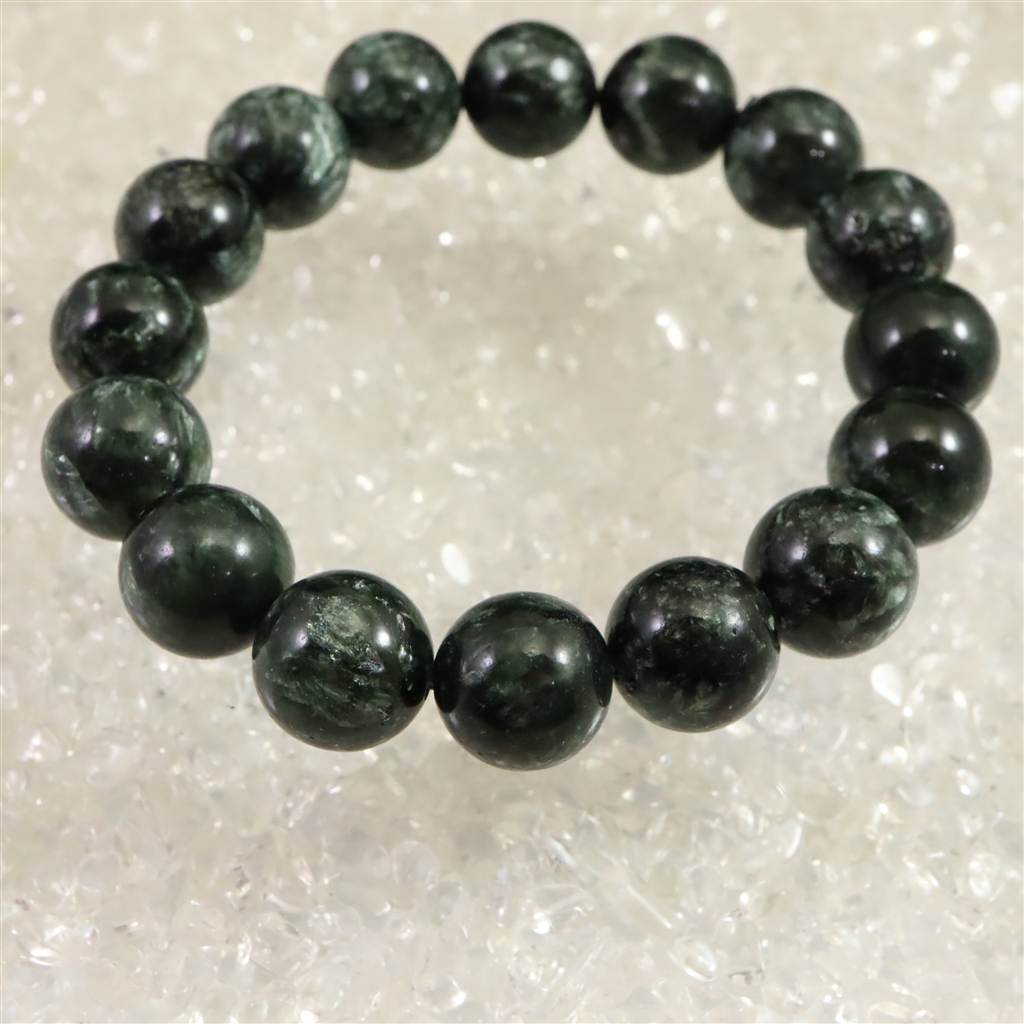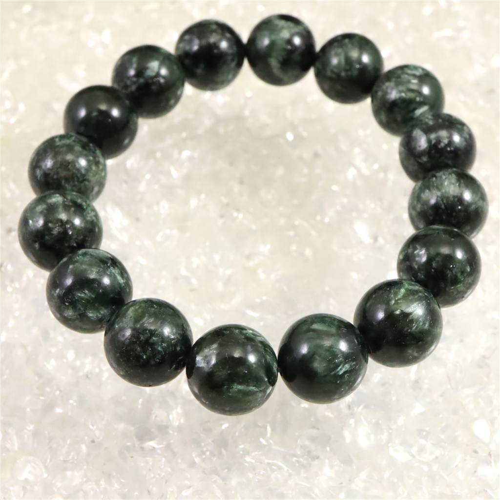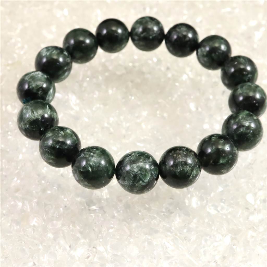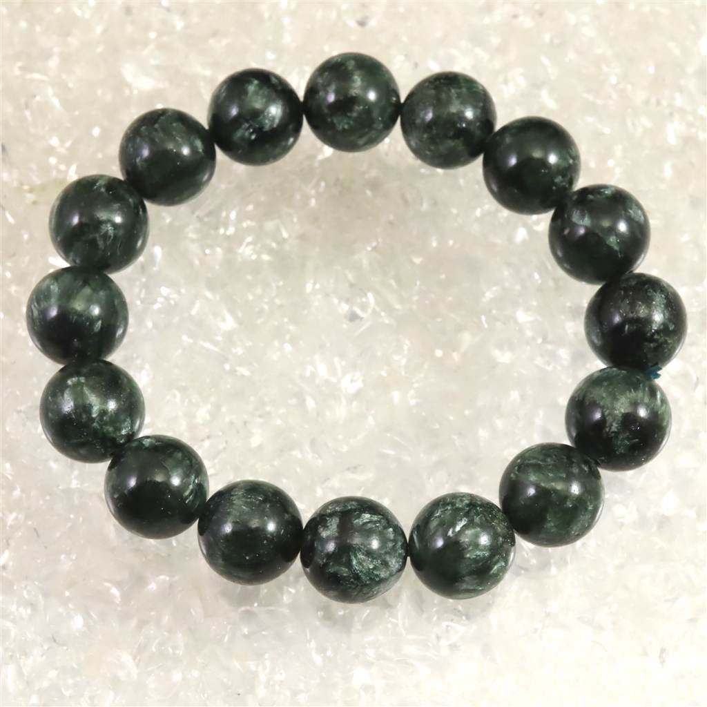 セラフィナイト クリノクロア 12.5mm玉ブレスレット 44.6g (ID:43332)