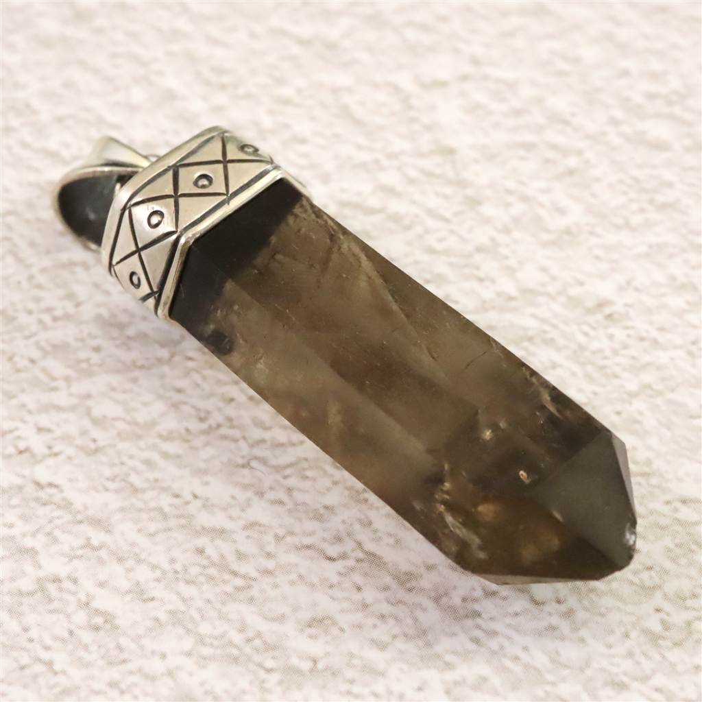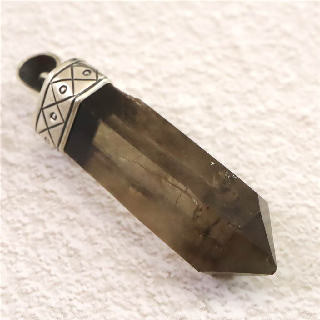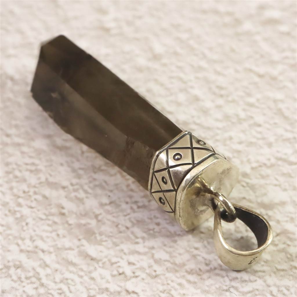 天然非加熱 ヒマラヤ ガウリンシャカール スモーキークォーツ 39.5mm ポイント 原石 ペンダントトップ セレスティアル ローブ 11.7g (ID:52121)