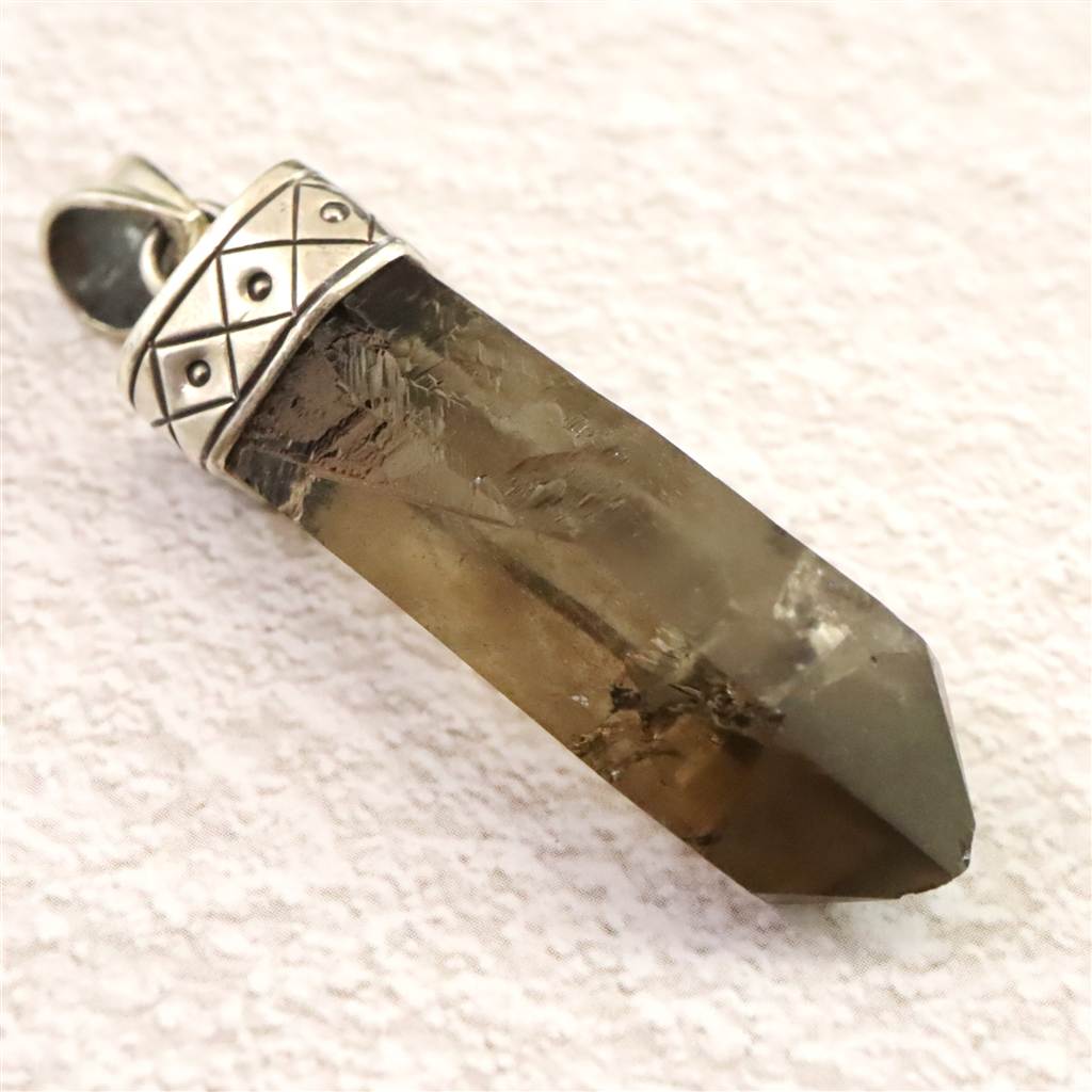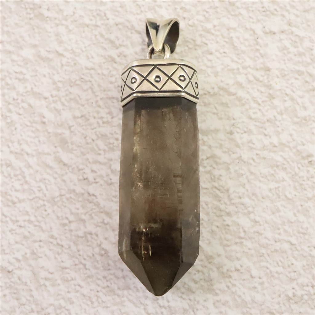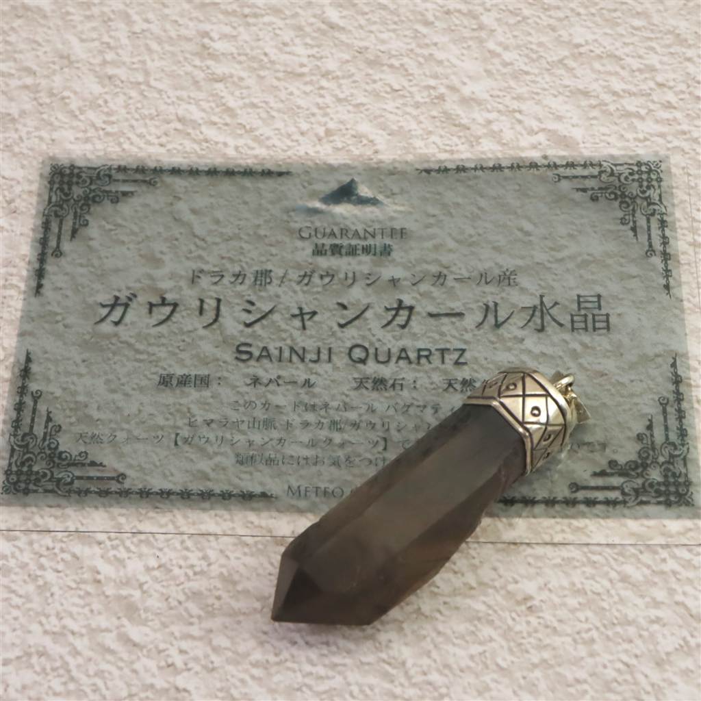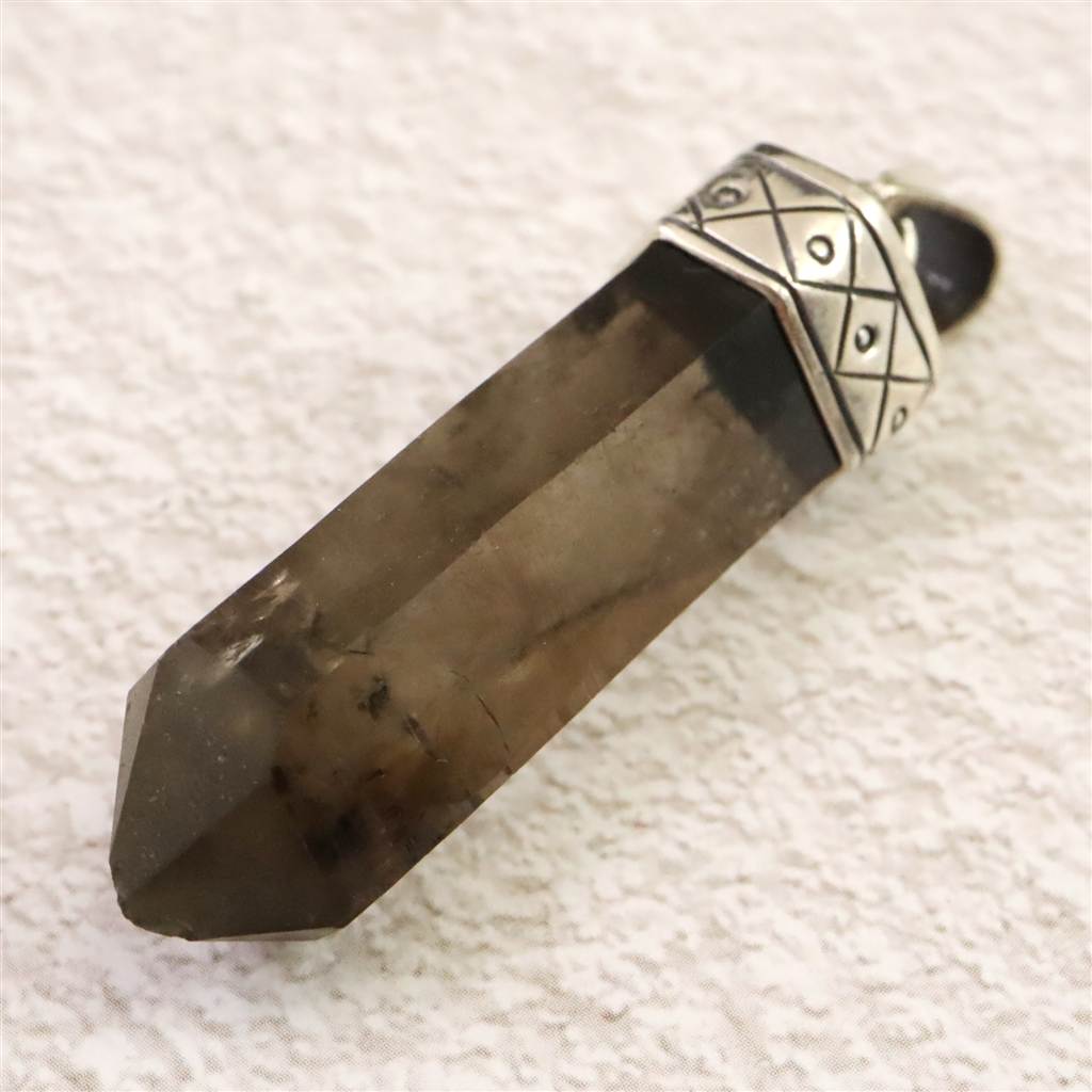 天然非加熱 ヒマラヤ ガウリンシャカール スモーキークォーツ 39.5mm ポイント 原石 ペンダントトップ セレスティアル ローブ 11.7g (ID:52121)