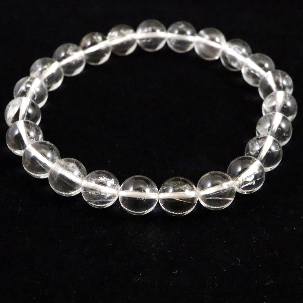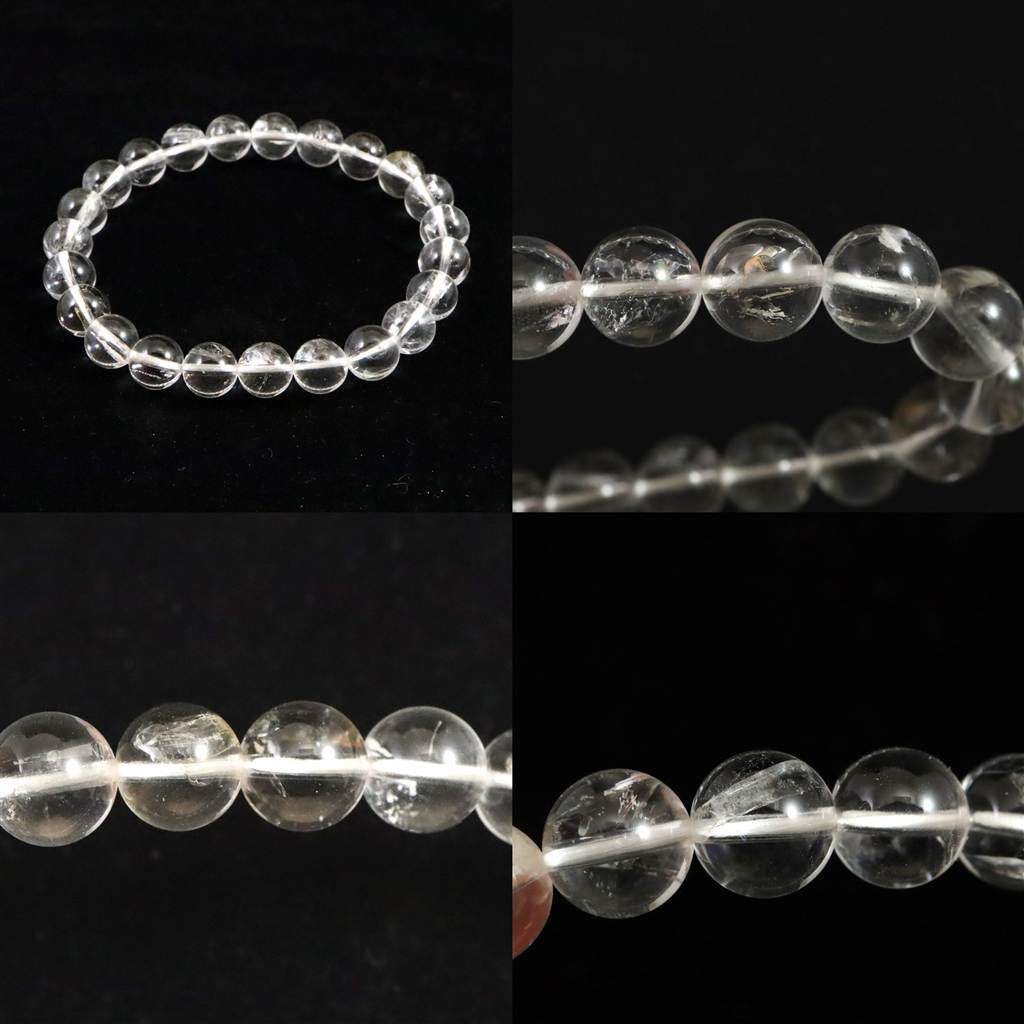 クォーツインクォーツ 貫入水晶 8mm玉ブレスレット 17.7g (ID:21886)