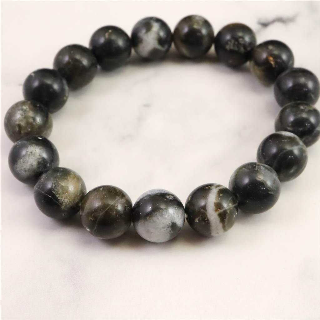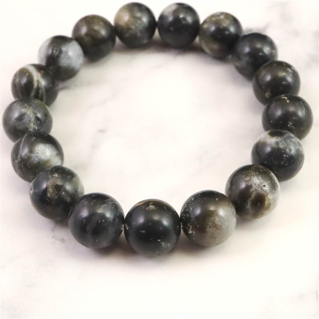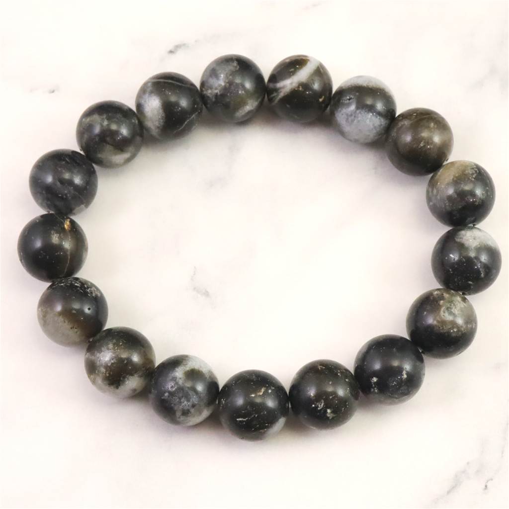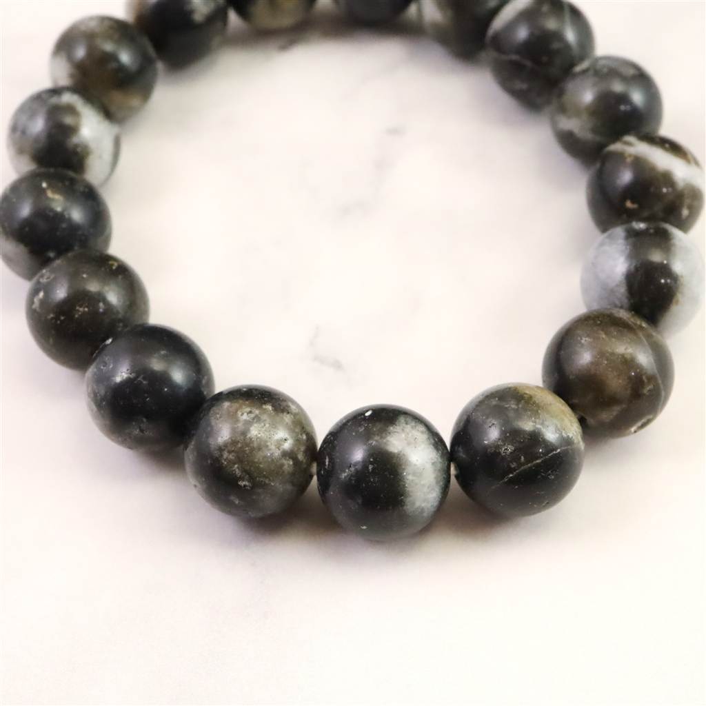 インドネシア産 イジェン水晶 黒 12mm玉ブレスレット 証明書付 41.2g (ID:76068)