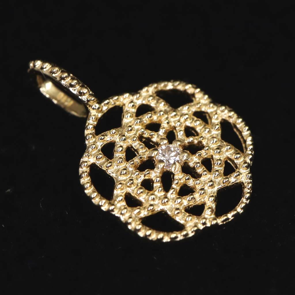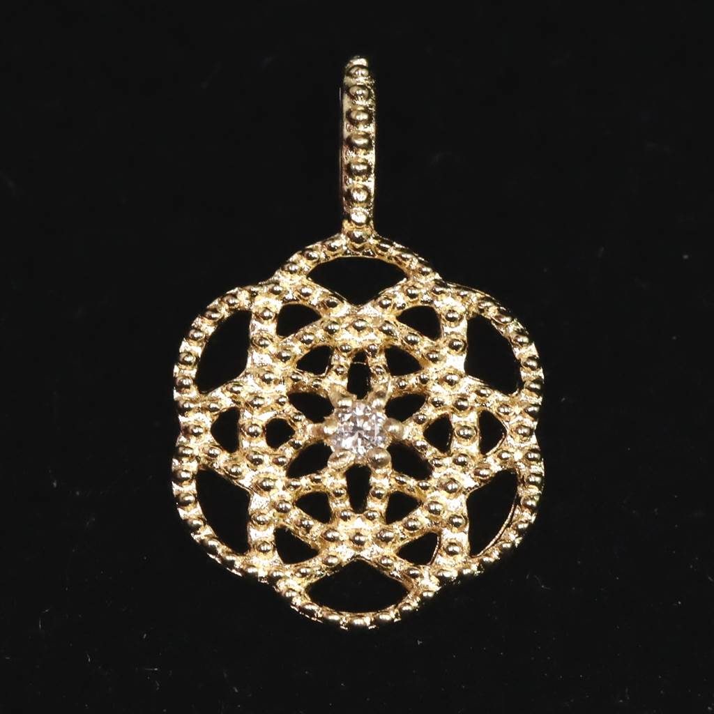 ・商品名 :シードオブライフ神聖幾何学 8mmラウンド チャーム 18金イエローゴールド ダイヤ付 0.47g (ID:36444)