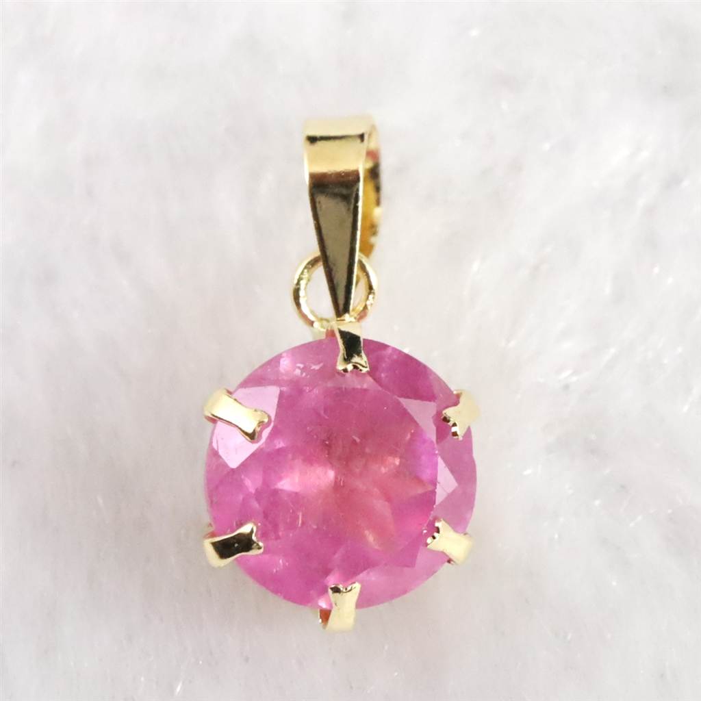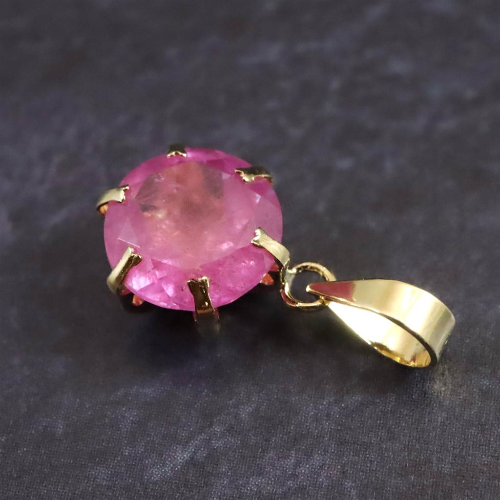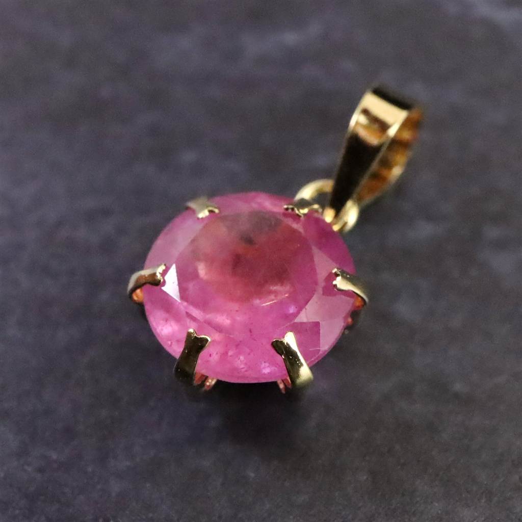 天然 未処理 ピンクサファイア 7mmラウンド ペンダントトップ K18YG 1.81ct (ID:42629)