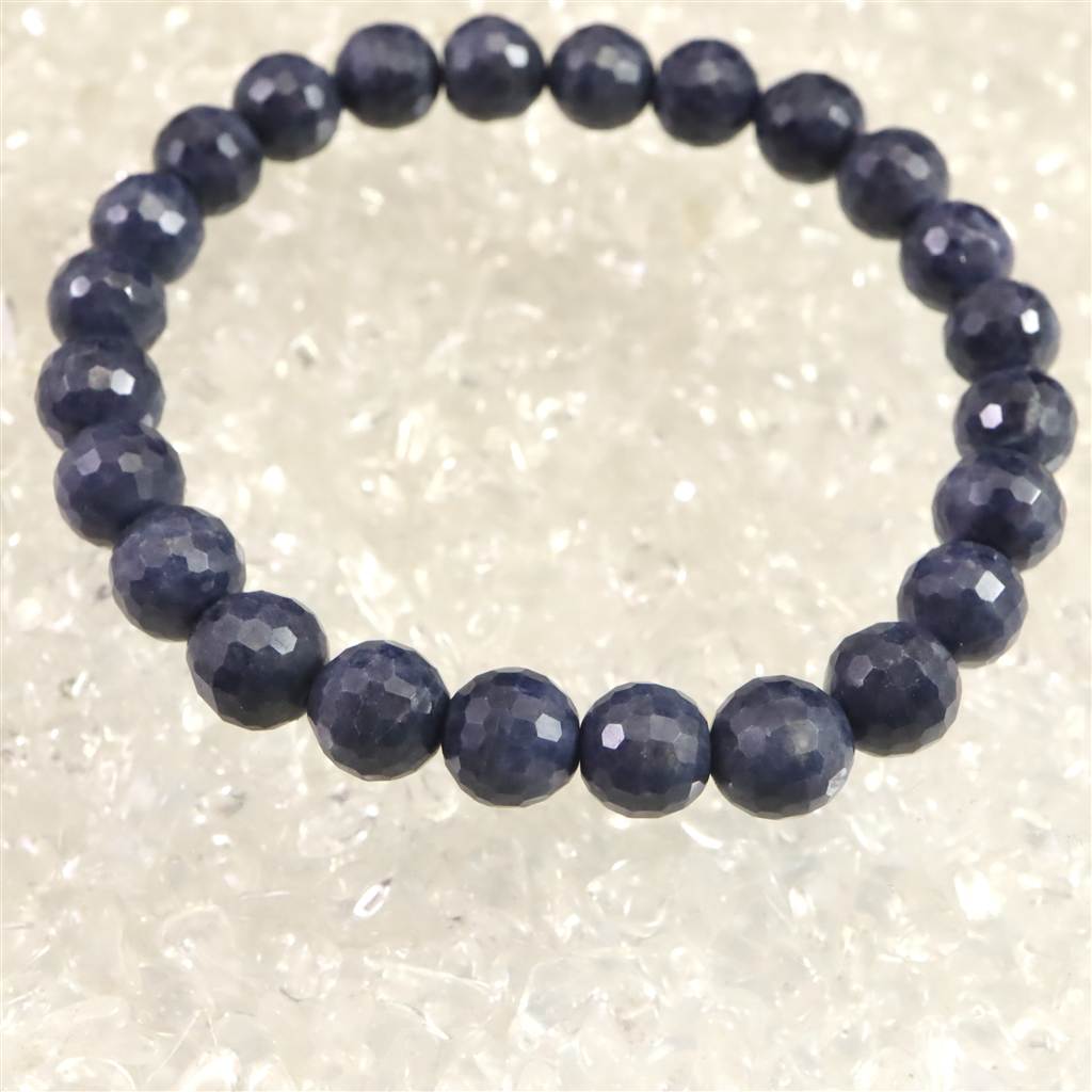 ミャンマー産 ブルー サファイア 8mm 128面カット ブレスレット 23.9g (ID:46978)