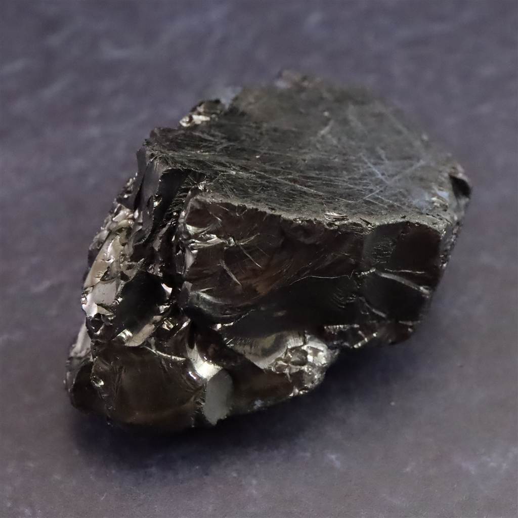 ◆ シュンガイトは、ロシアのカレリア共和国オネガ湖北西部のシュンガから産出された、20億年前に作られた鉱物であり、地球上で唯一天然のフラーレンが含まれている希少鉱物と言われています。シュンガイトの中での特に炭素の純度が約90%以上含有されているものを(ノーブルシュンガイト)または(エリートシュンガイト)といいます。光沢のある表面が特徴で希少性もあることから高価となります。