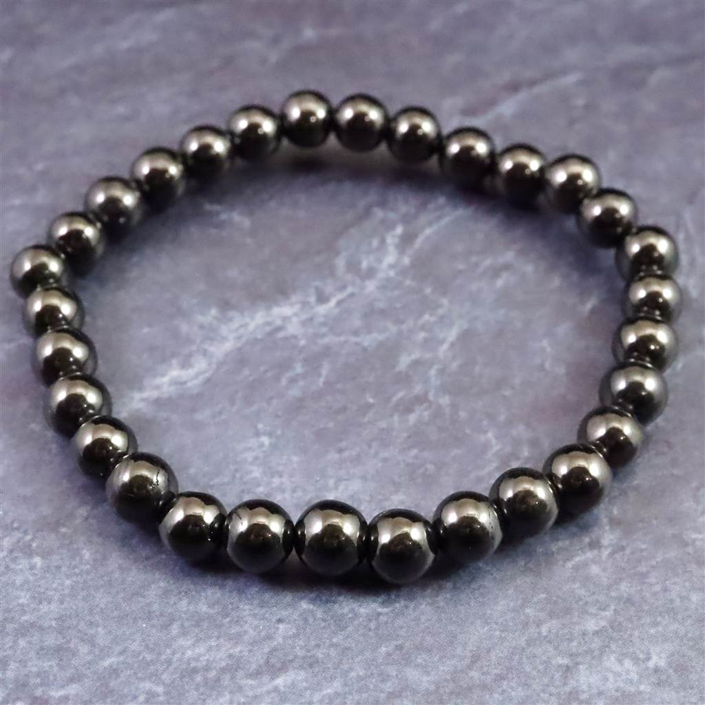 ノーブルシュンガイト エリートシュンガイト 6mm玉ブレスレット 8.54g (ID:16606)