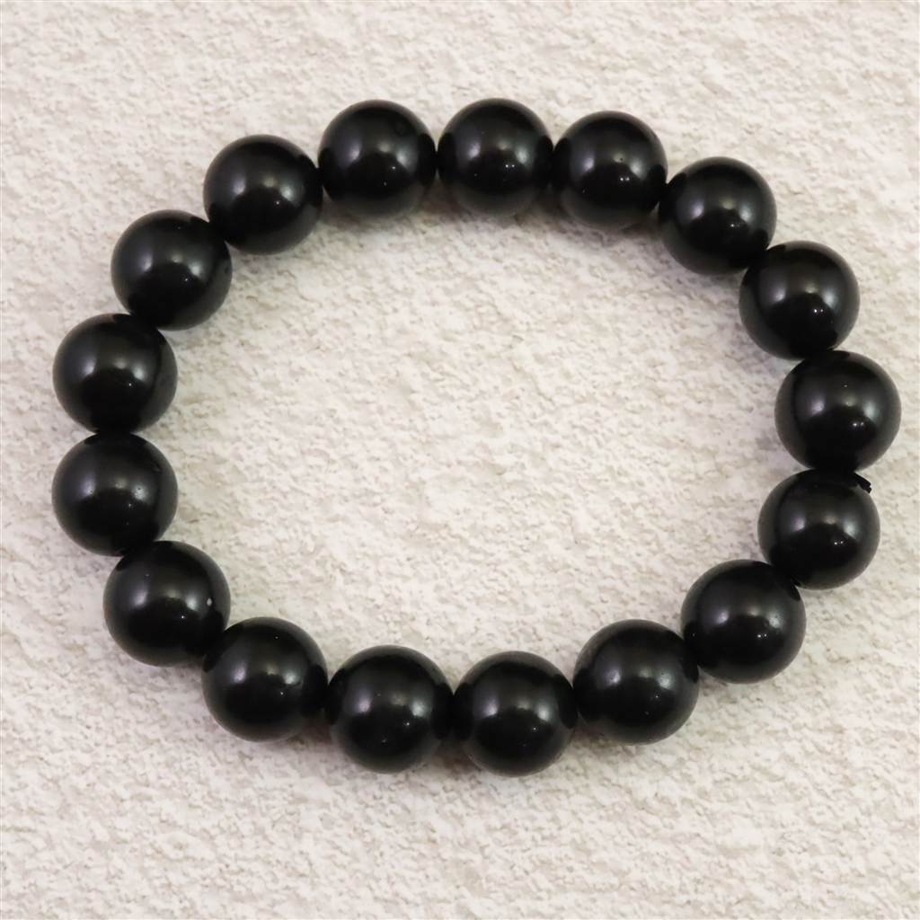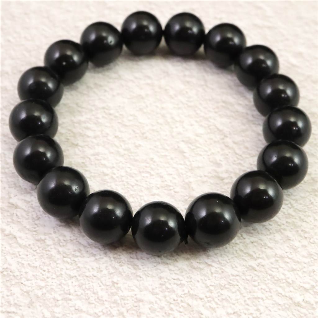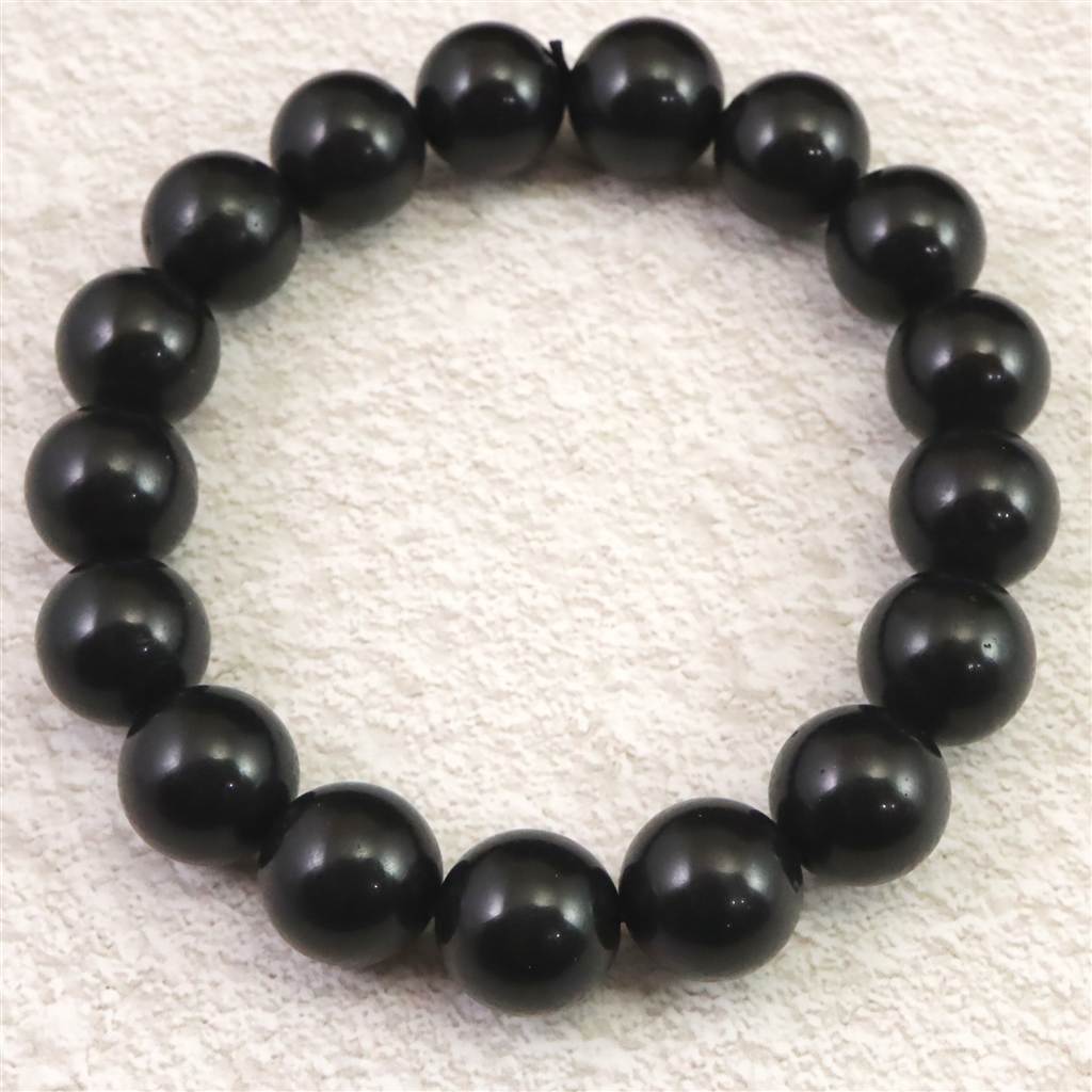 ロシア産 シュンガイト AAグレード 12mm玉ブレスレット 49.3g (ID:25169)