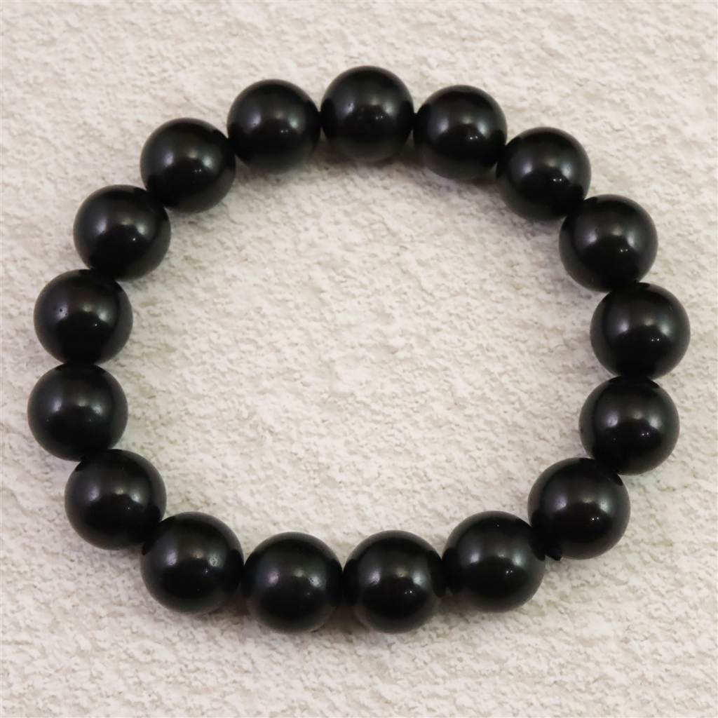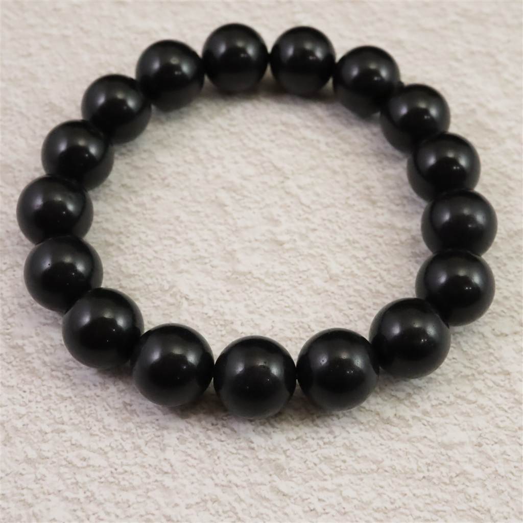 ロシア産 シュンガイト AAグレード 12.5mm玉ブレスレット 51.4g (ID:48075)