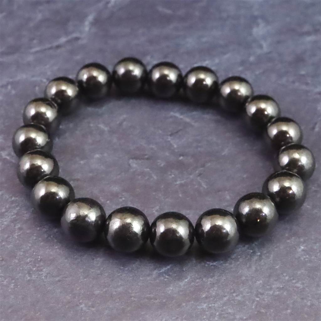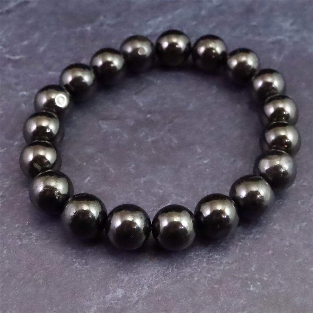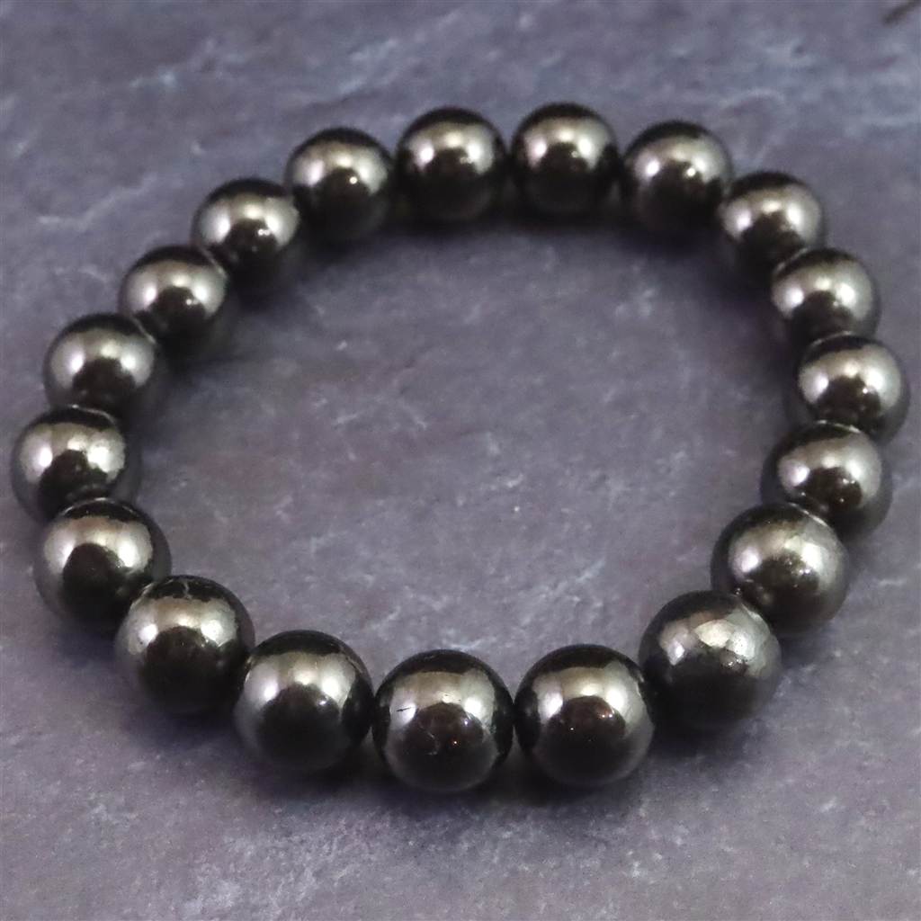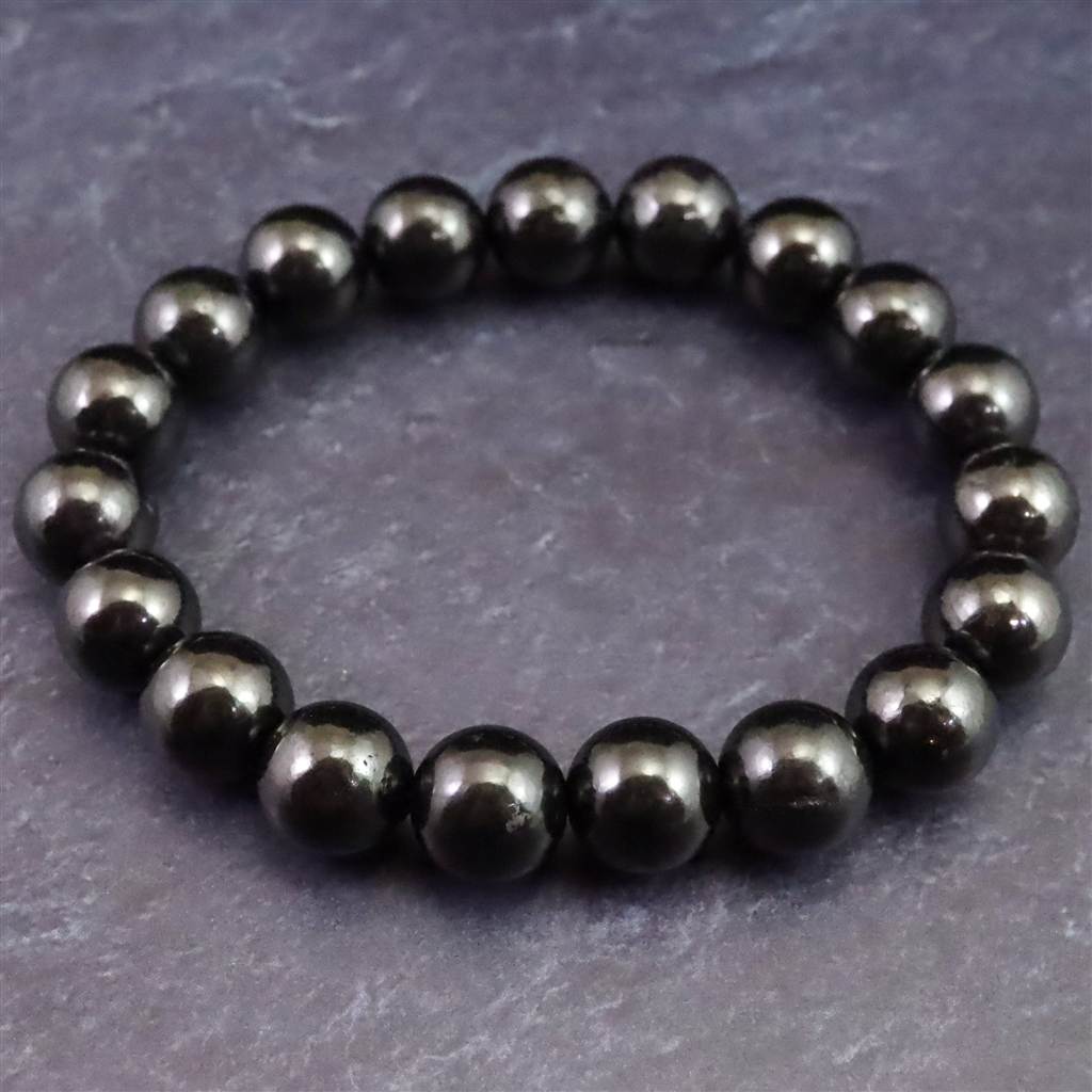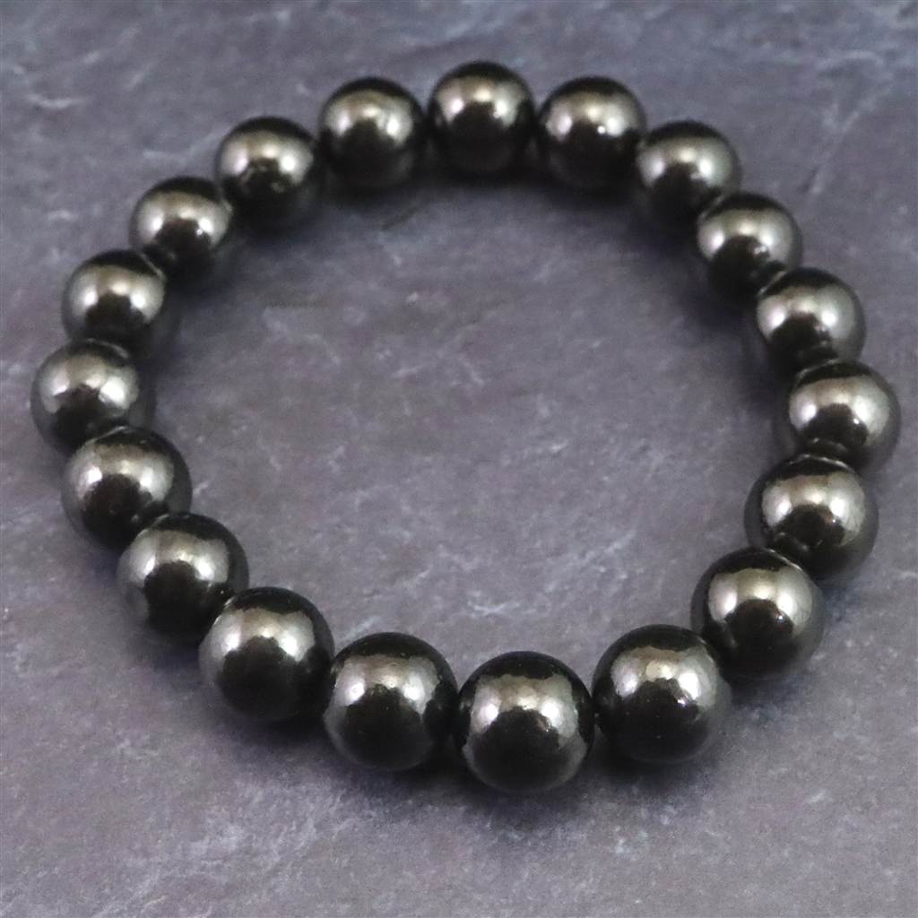 ノーブルシュンガイト エリートシュンガイト 10mm玉ブレスレット 26.6g (ID:85016)