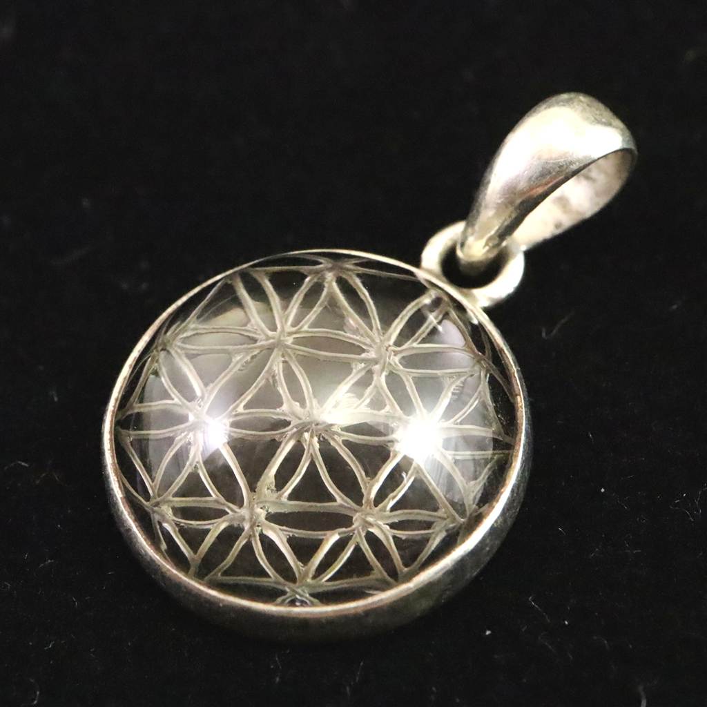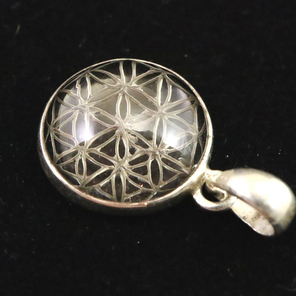 ◆ 希少なネパール・ガウリシャンカール産スモーキー・クォーツ、フラワーオブライフのペンダントトップです。