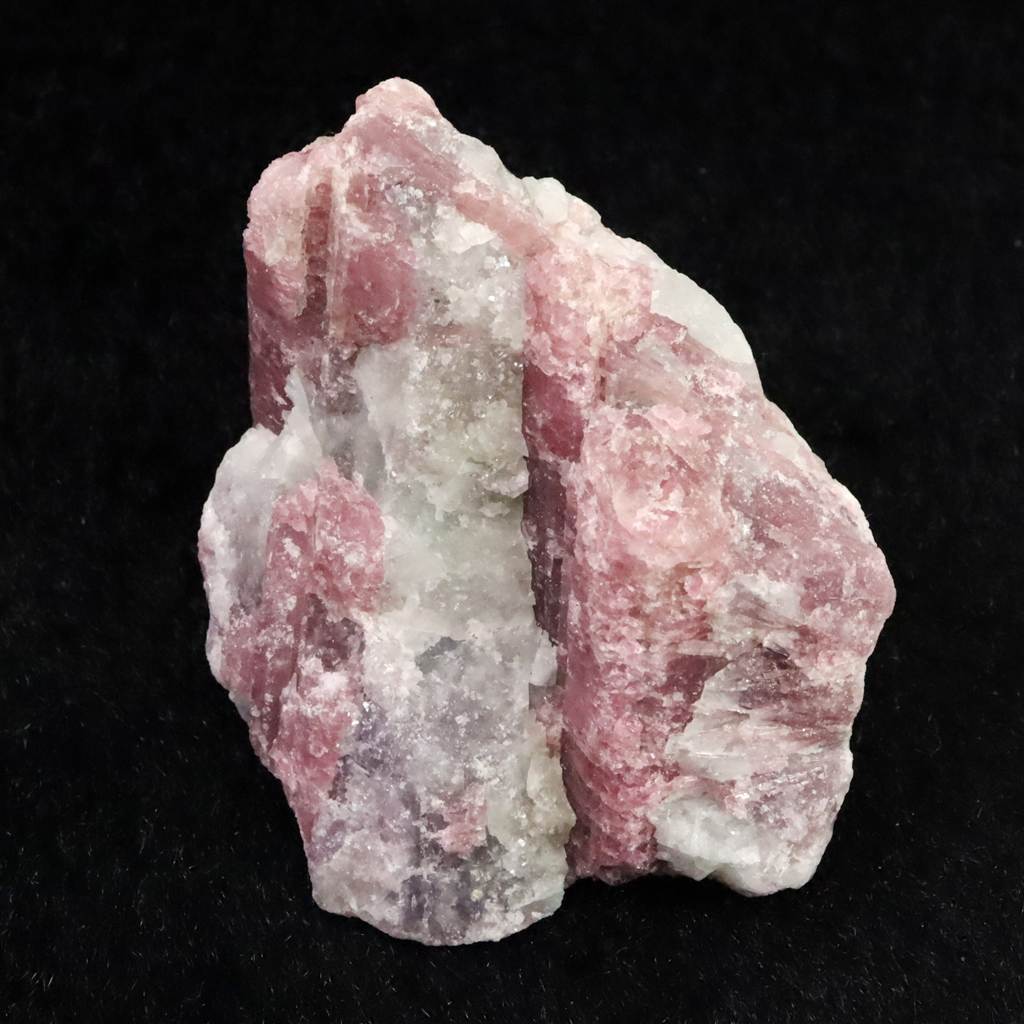 ◆ 石英(水晶)等の母岩の中に柱状結晶をしたピンクトルマリンが共存しています。 トルマリンは加熱すると静電気を帯びるという特徴を持ちます。そのことから和名を「電気石」といいます。 ピンクトルマリンは、主にマンガンによって発色します。 ピンクトルマリンは別名で「ルベライト」と呼ばれることがあります。
