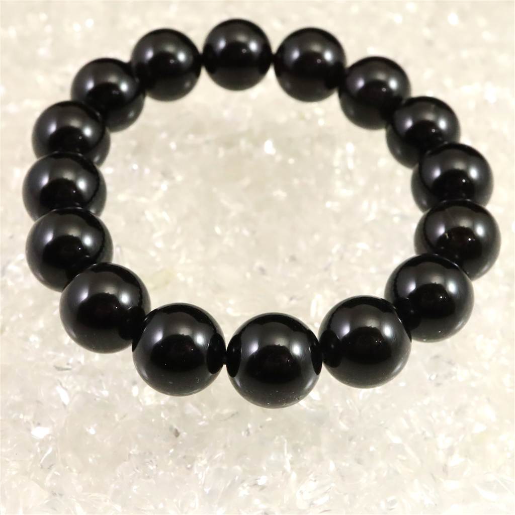 チベット産 天然モリオン水晶 4A 12mm玉 ブレスレット 39.6g (ID:27633)