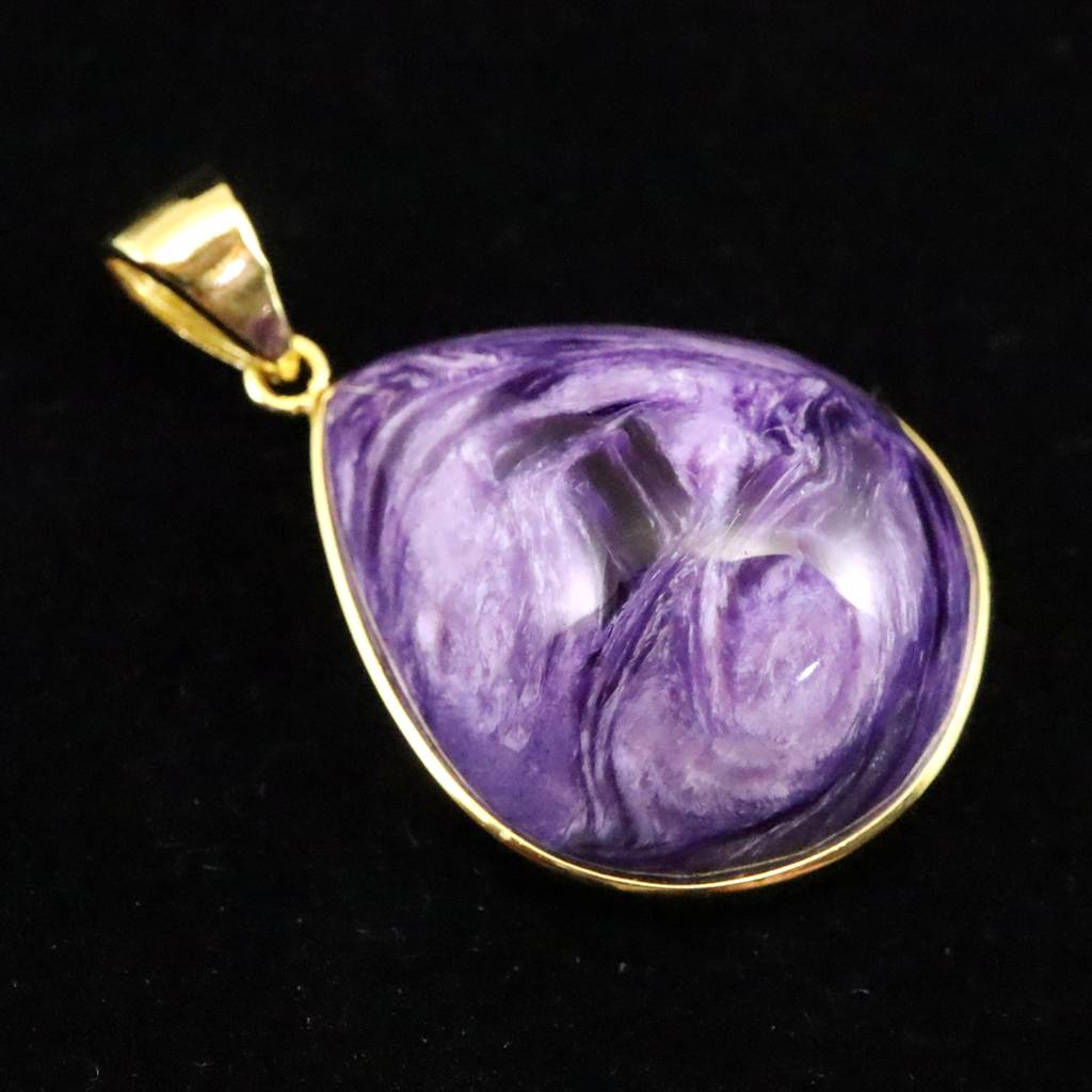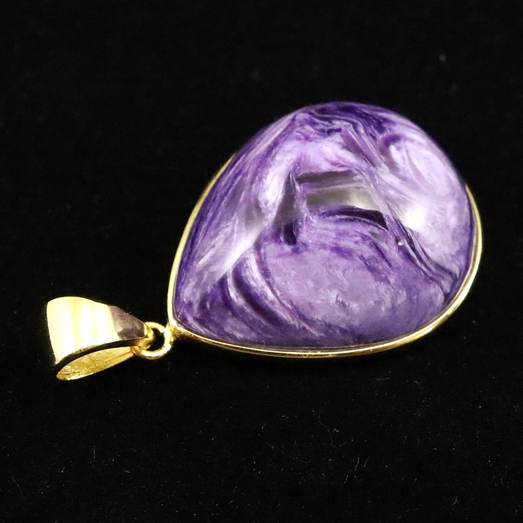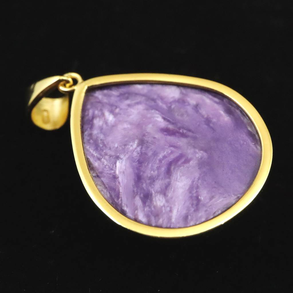 ・商品名 :チャロアイト AAA+ 25mmティアドロップ ペンダントトップ 18KGP 7.9g (ID:28373)