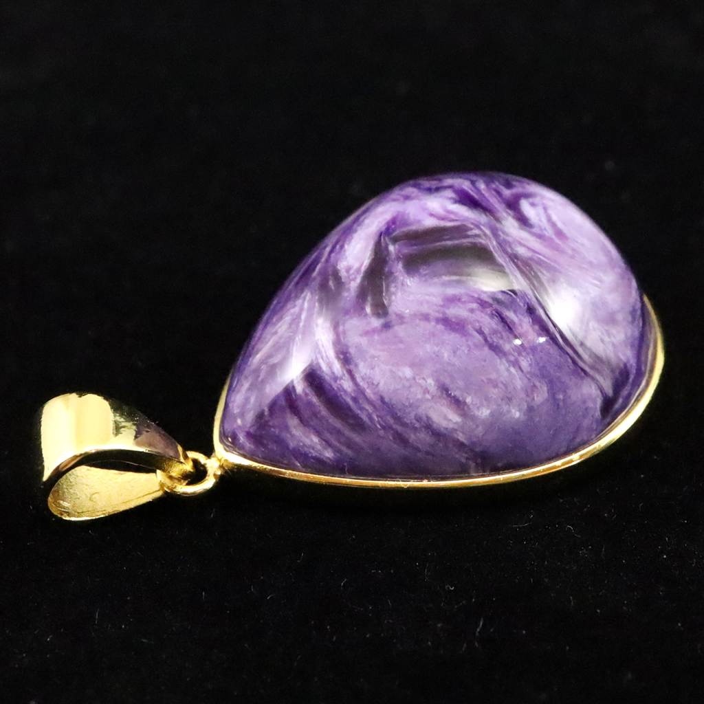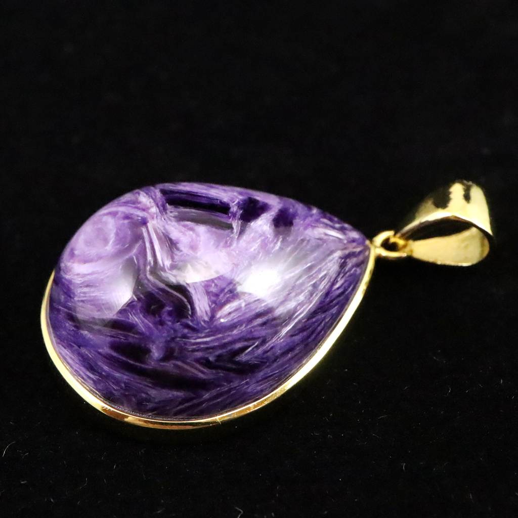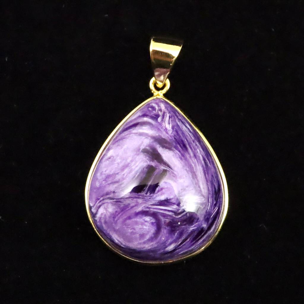・商品名 :チャロアイト AAA+ 25mmティアドロップ ペンダントトップ 18KGP 7.9g (ID:28373)