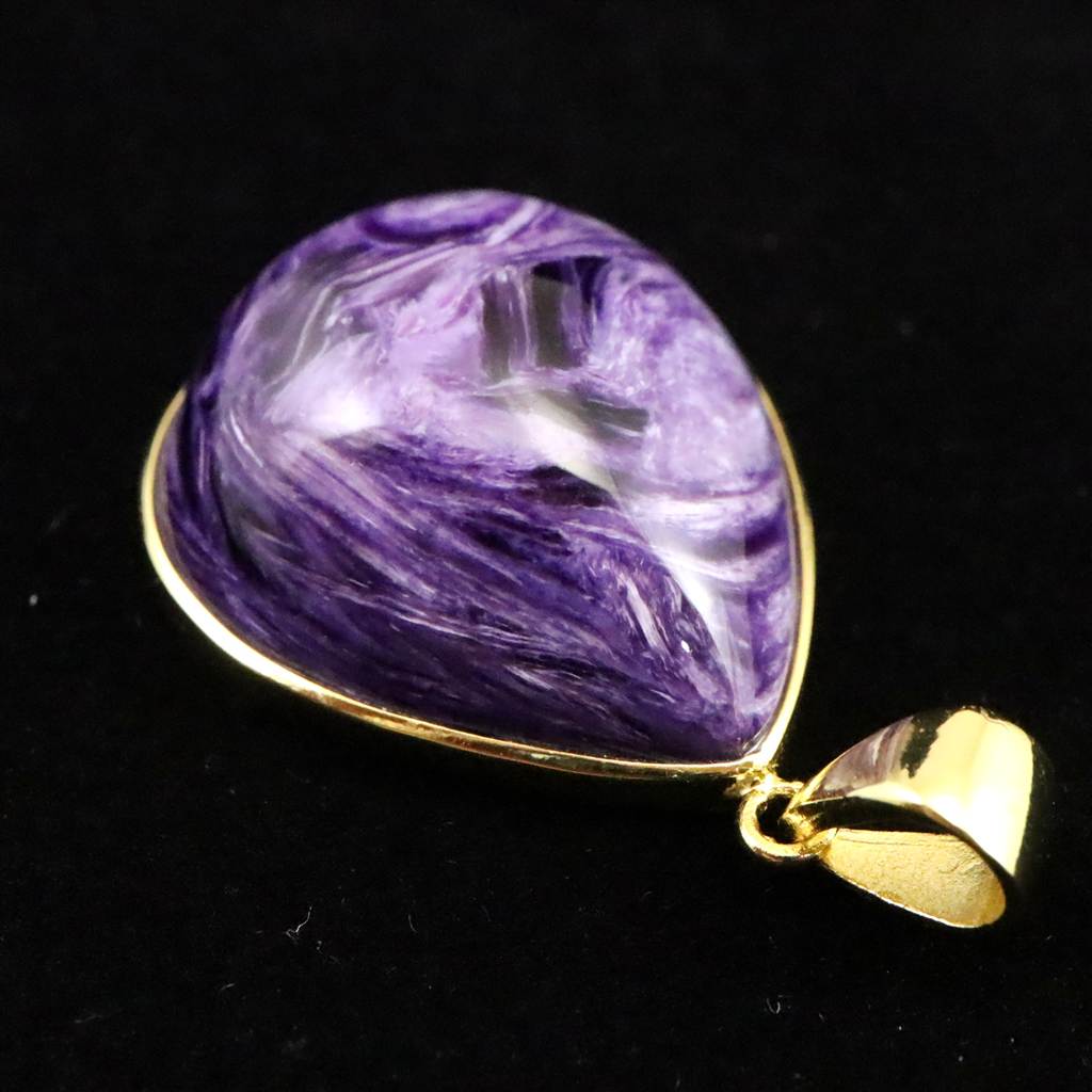 チャロアイト AAA+ 25mmティアドロップ ペンダントトップ 18KGP 7.9g (ID:28373)