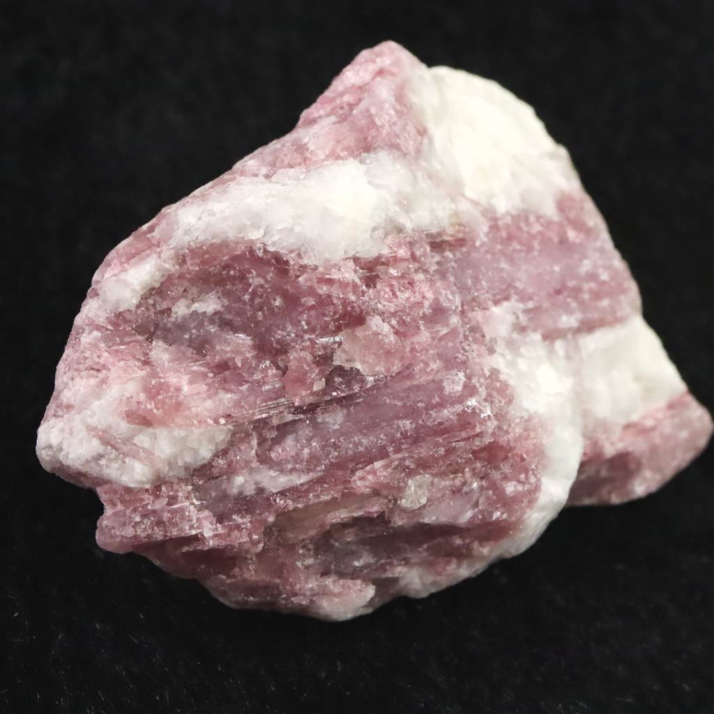 ◆ 石英(水晶)等の母岩の中に柱状結晶をしたピンクトルマリンが共存しています。 トルマリンは加熱すると静電気を帯びるという特徴を持ちます。そのことから和名を「電気石」といいます。 ピンクトルマリンは、主にマンガンによって発色します。 ピンクトルマリンは別名で「ルベライト」と呼ばれることがあります。