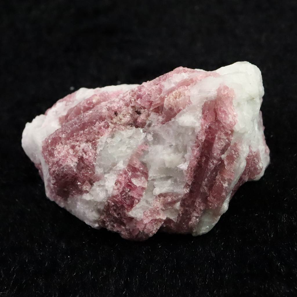 ◆ 石英(水晶)等の母岩の中に柱状結晶をしたピンクトルマリンが共存しています。 トルマリンは加熱すると静電気を帯びるという特徴を持ちます。そのことから和名を「電気石」といいます。 ピンクトルマリンは、主にマンガンによって発色します。 ピンクトルマリンは別名で「ルベライト」と呼ばれることがあります。