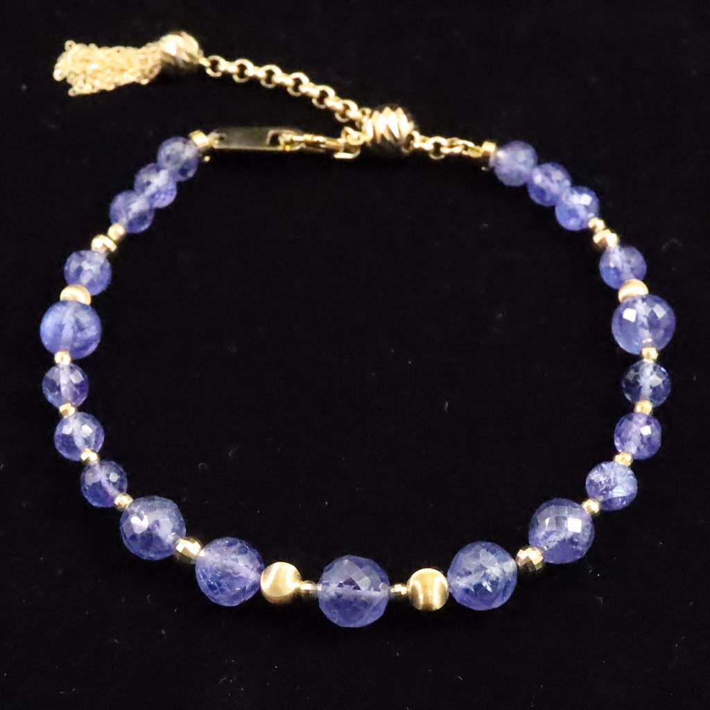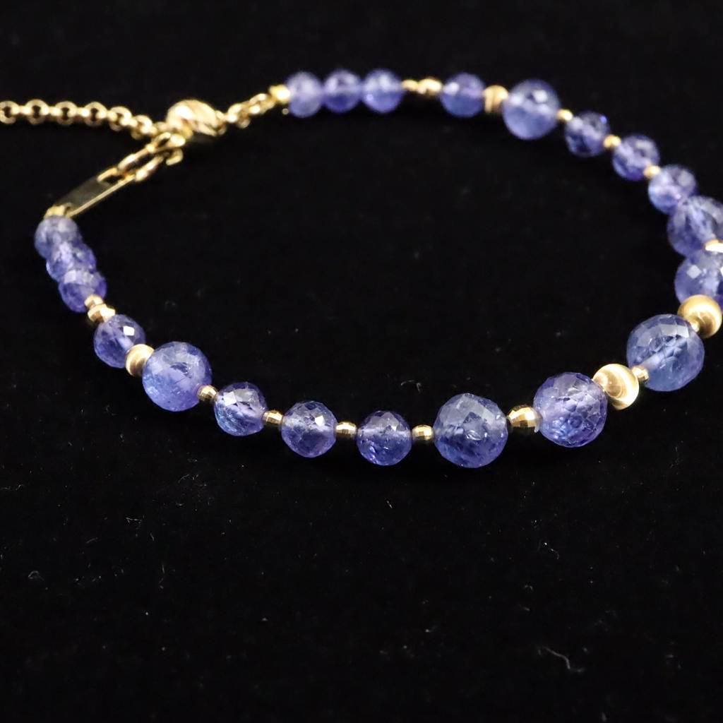 タンザナイト ファセットカットビーズ ブレスレット K18GY 7.9g (ID:89701)
