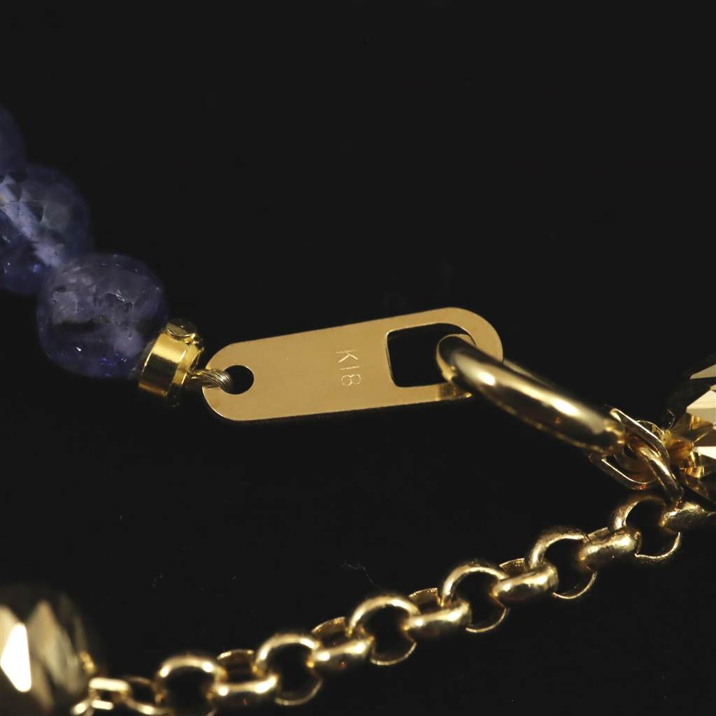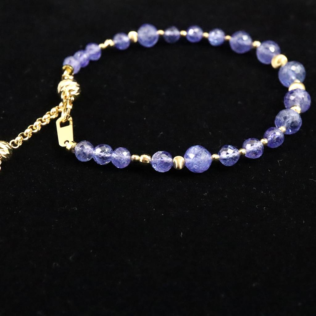 ◆ ファセットカットされたタンザナイトのビーズとK18パーツ(一部パーツは真鍮を使用しております。画像にてご確認お願いします。)を使用したブレスレットです。