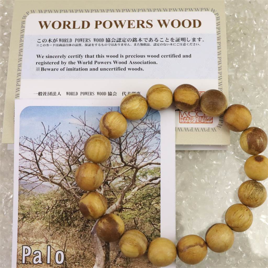 パロサント 香木 ウッドビーズ 11.5mm玉ブレスレット 証明書付 9.7g (ID:26457)