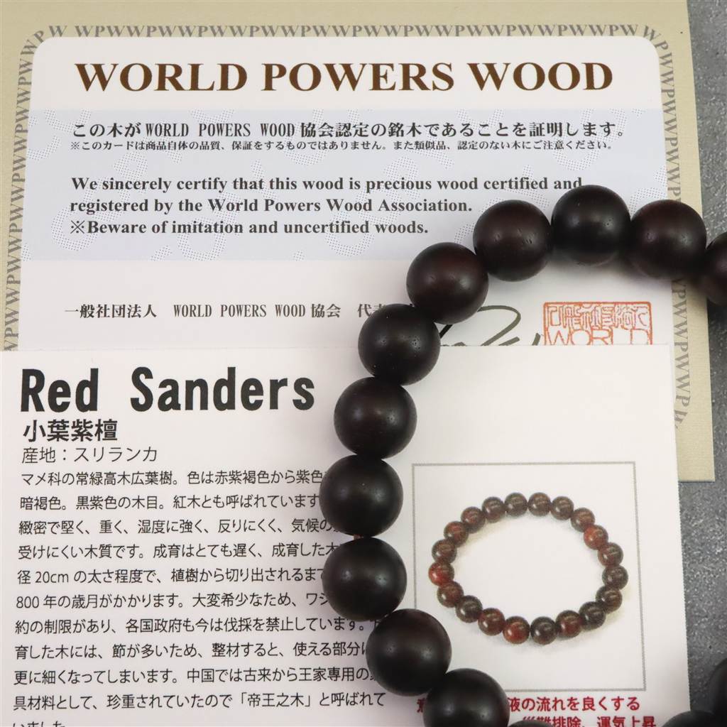 小葉紫檀 ウッドビーズ 10.5mm玉ブレスレット 証明書付 15.1g (ID:98404)